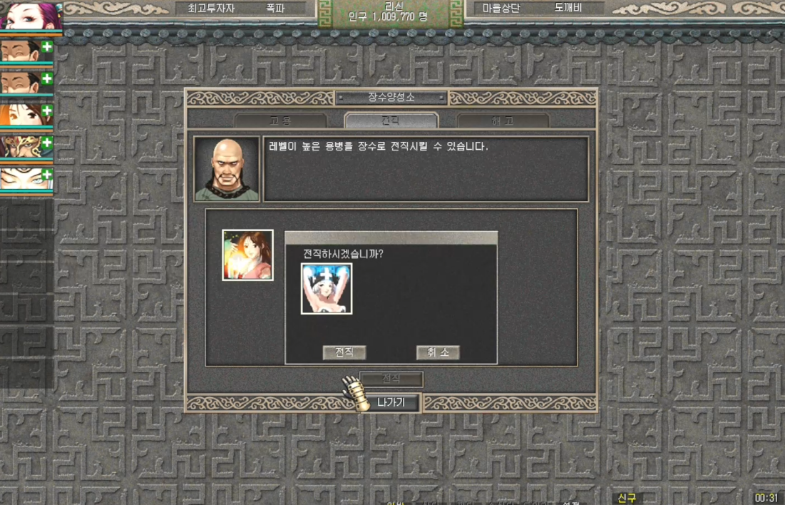 거상 게임 특성상 장수를 고용하려면 해당 국적 캐릭터여야 하는데