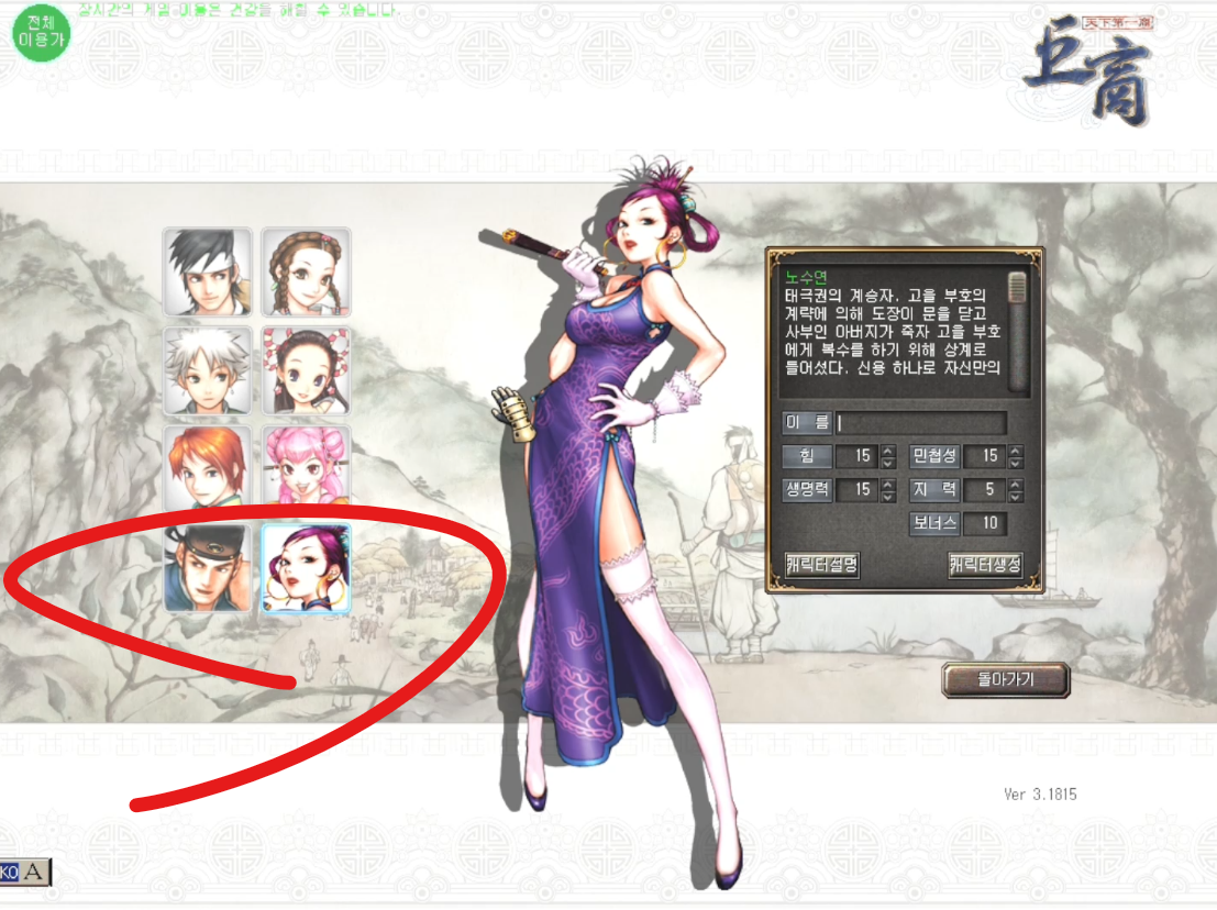 추천 시작 캐릭터는 중국 국적의 당호엽 또는 노수연 입니다. (성별은 취향)
